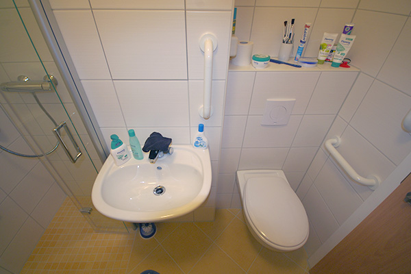 Ältere oder behinderte Menschen benötigen viel Zeit für Körperhygiene und – pflege, daher sollte der Sanitärbereich mit Liebe zum Detail angepasst werden.